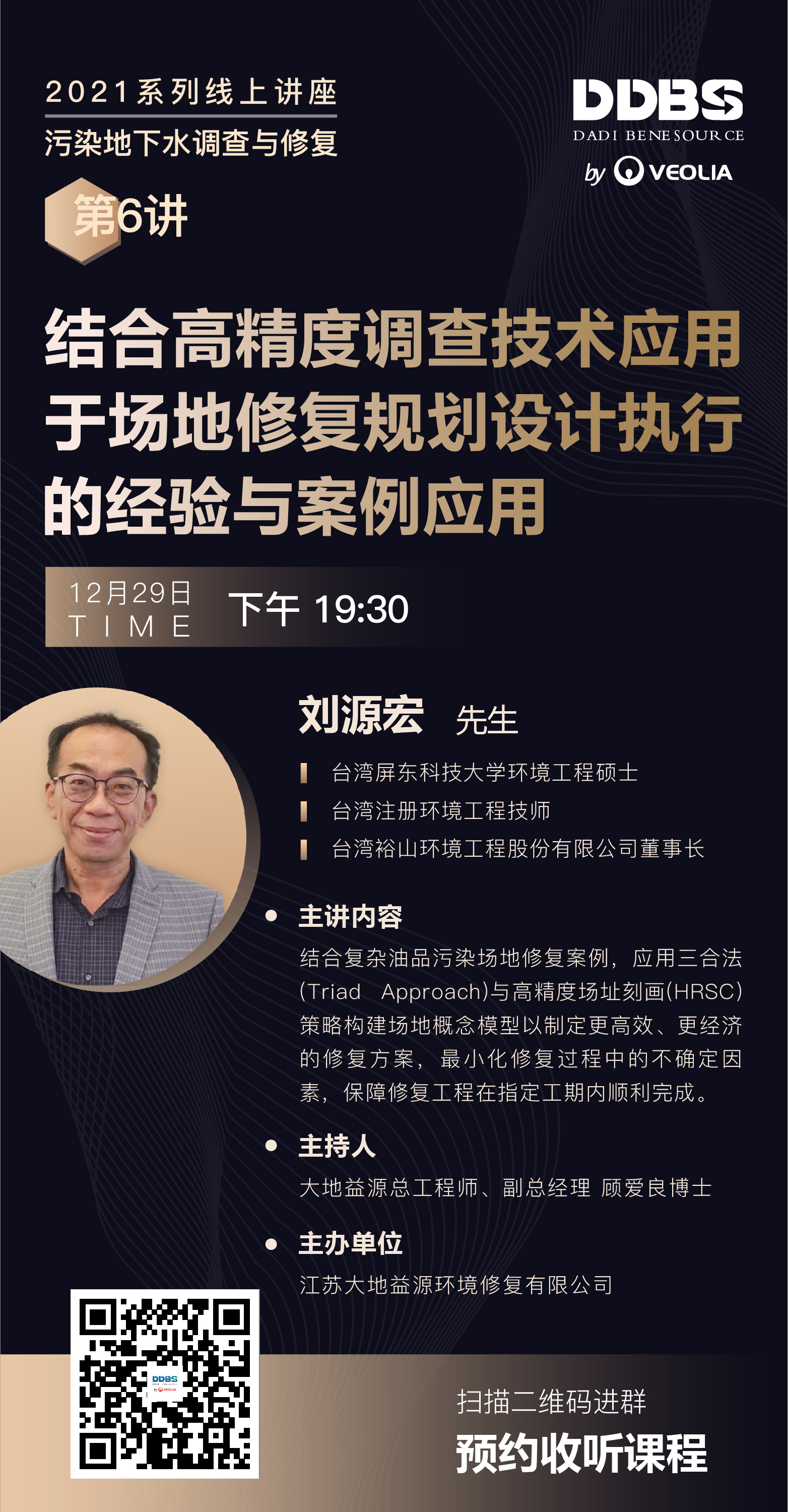 12月29日晚19:30,2021DDBS在線系列講座第6講將于與大家見面。這是本年度系列講座的最后一期,第6講嘉賓我們特別邀請到劉原宏先生,為大家帶來《結合高精度調查技術應用于場地修復規劃設計執行的經驗與案例應用》講座。