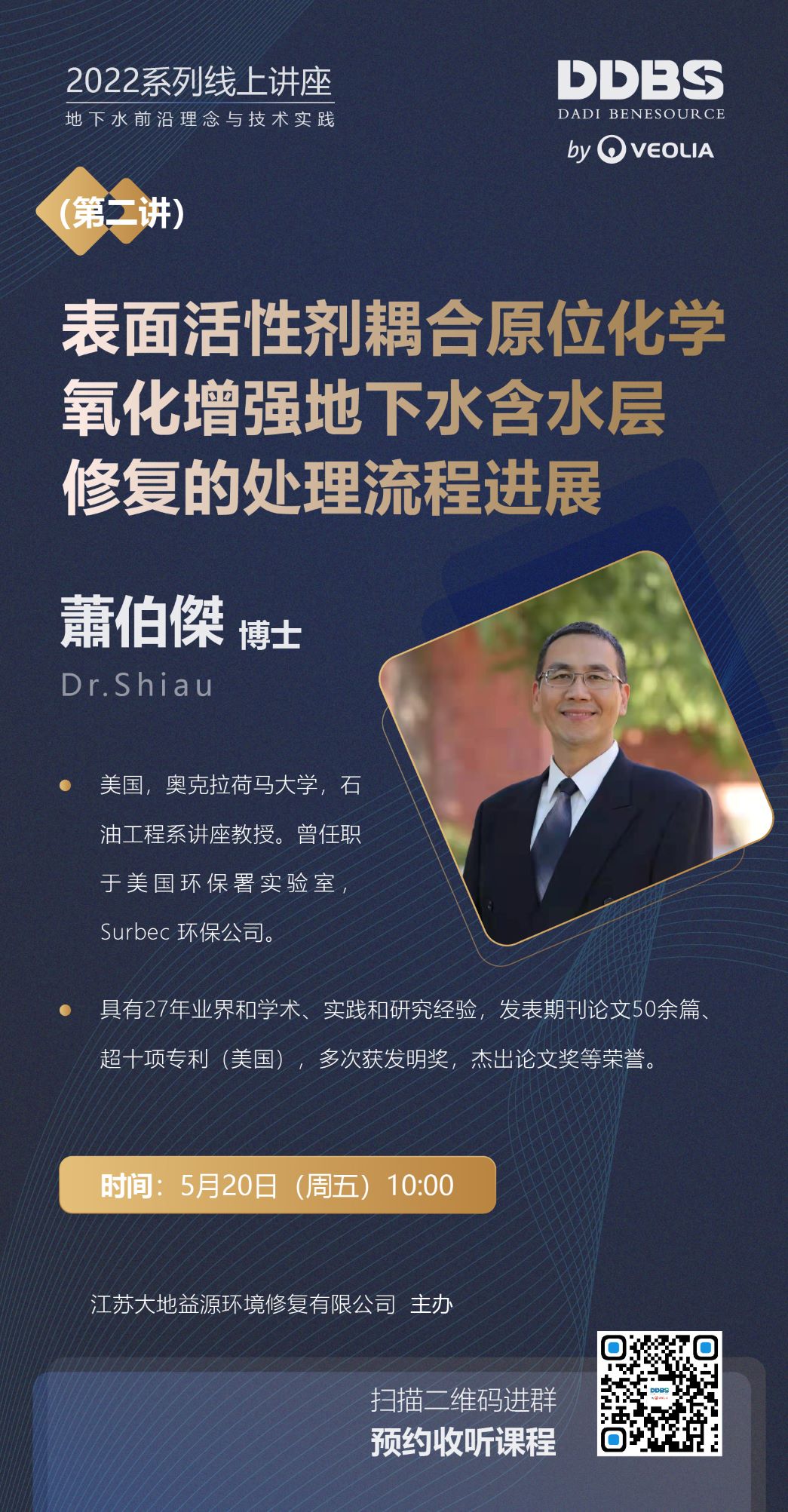 DDBS在線講座2022年第二講即將開播,特邀蕭伯傑博士主講表面活性劑強化含水層修復耦合原位化學氧化之工藝進展:經驗教訓及新趨勢